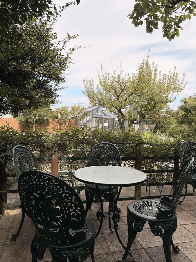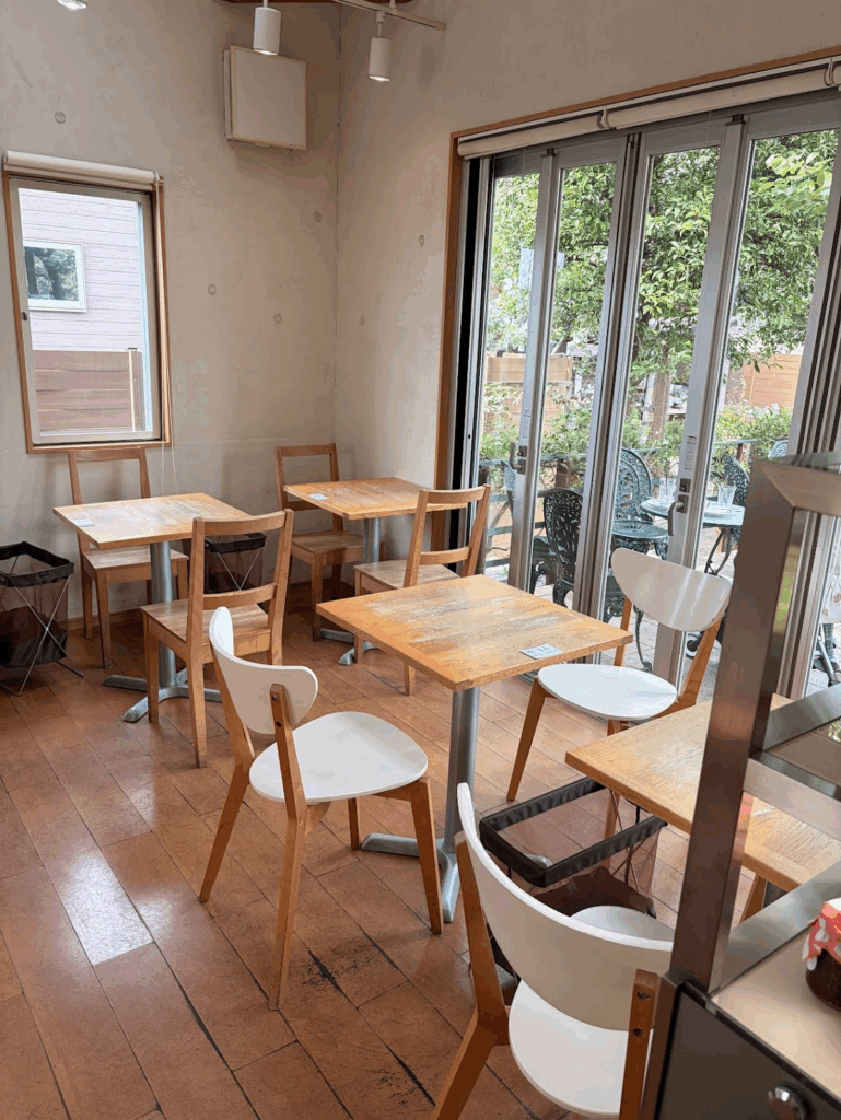カフェスペースは、ガーデンを眺めながら利用できるテラス席や店内席があり、静かな住宅街の中で“ちょっと特別なひととき”を過ごしたい方にぴったりです。私も実際に利用しましたが、美味しいケーキにコーヒーをいただきながらゆったりとした時間を過ごすことができました!