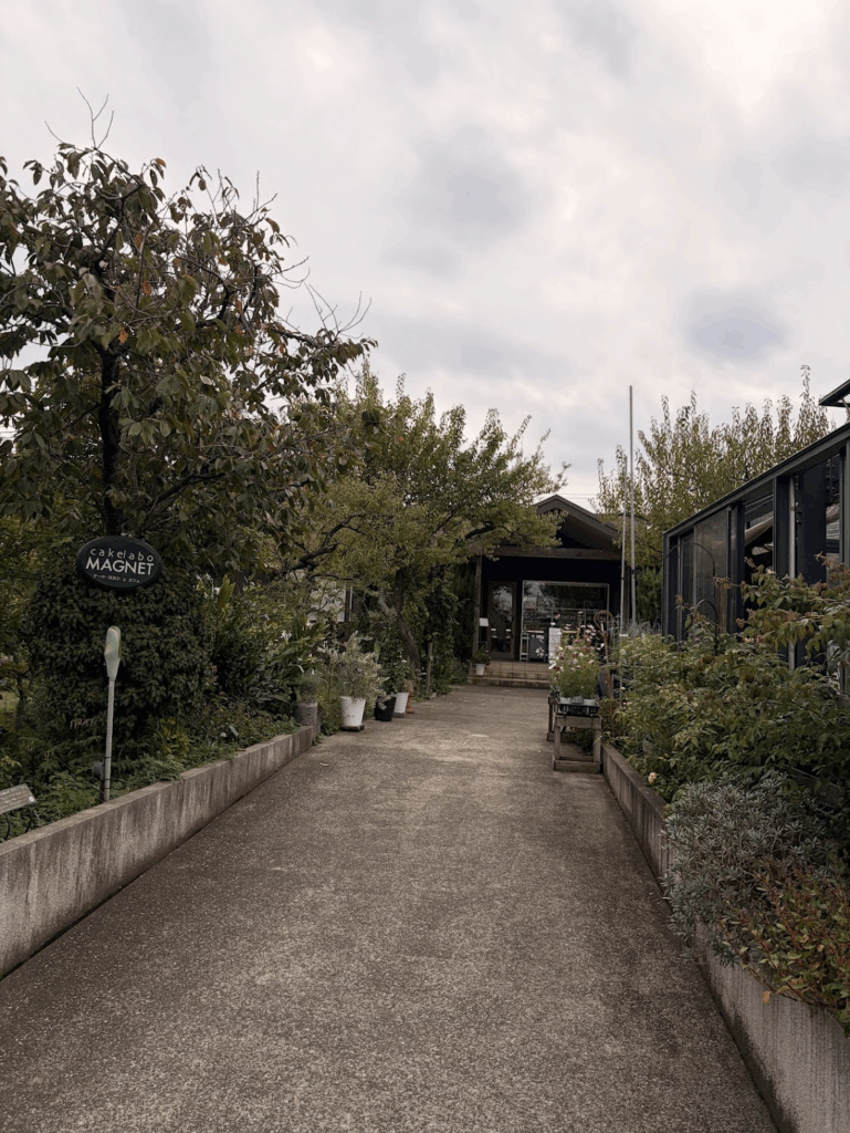 住宅街の落ち着いた一角に佇むハーブ園の中にあるスイーツ&カフェ、ケーキラボ・マグネット(Cake Labo MAGNET)。お店へのアクセスは、北総線「矢切駅」から徒歩でおよそ10分ほどという案内があり、バスや車でも立ち寄りやすい立地です。