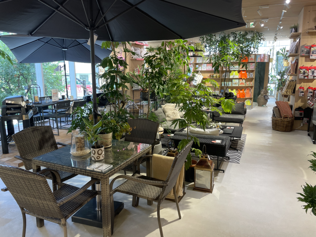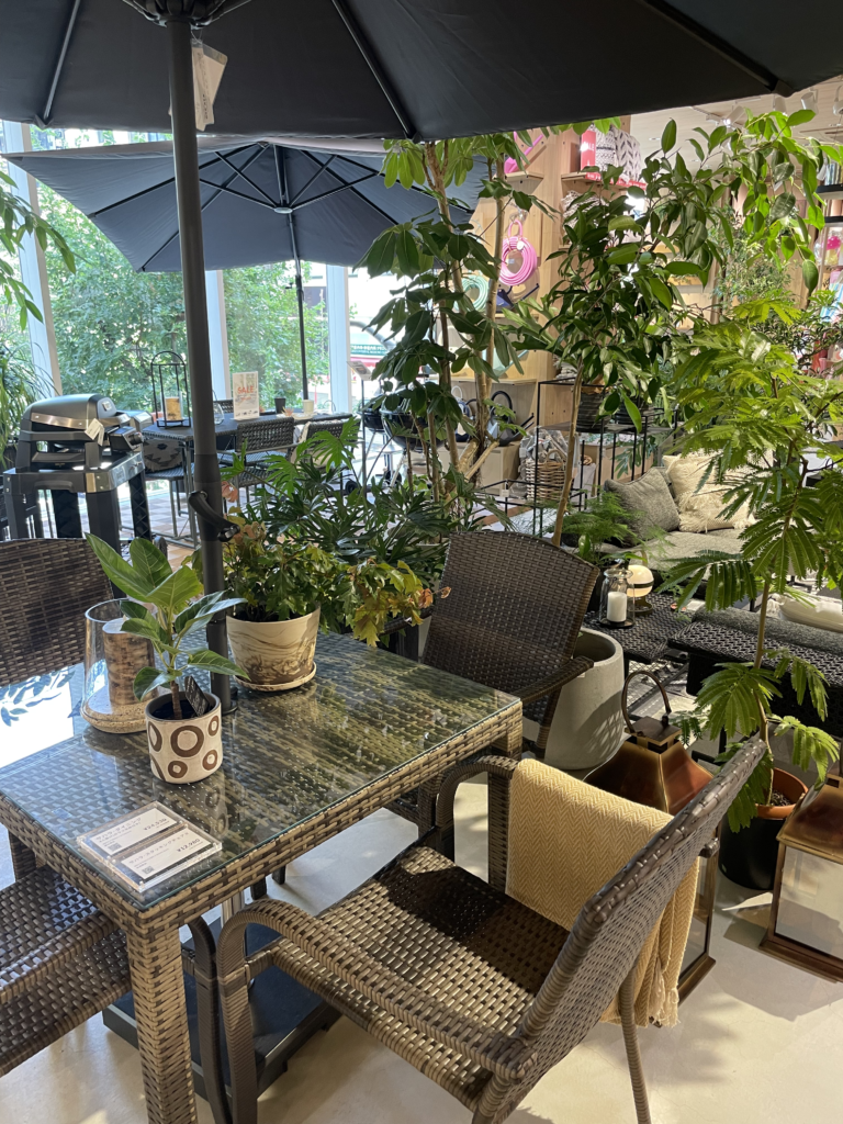 さらに、雑貨やインテリア小物、アウトドアリビング向けの家具なども扱っており、植物だけでなく部屋全体を整える“トータルコーディネート”ができる点が他店との大きな違いです。植物を置くサイドテーブル、空間を整えるアートやオブジェ、屋外空間に使えるチェアなど、幅広い商品が並ぶことで、「植物 × インテリア」の世界がより一層深まります。