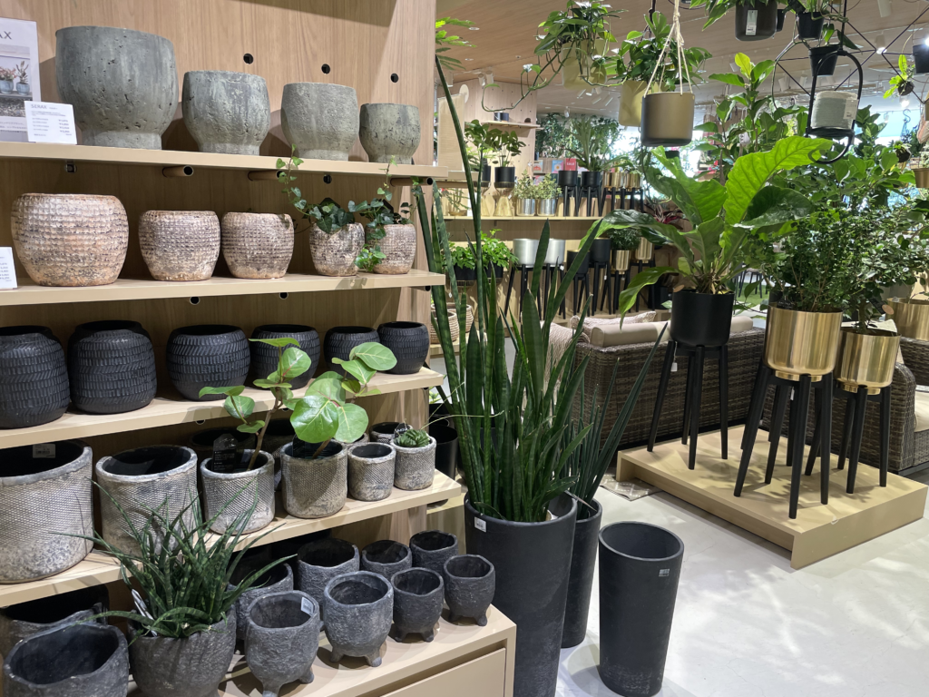 植物を単体で扱うのではなく、「植物が暮らしにどう溶け込むか」を軸に商品がセレクトされている点が大きな特徴です。観葉植物、プランター、家具、雑貨などが一体となって空間が構成されているため、来店者は店に入った瞬間から「植物と暮らす心地よい部屋」を擬似体験することができます。